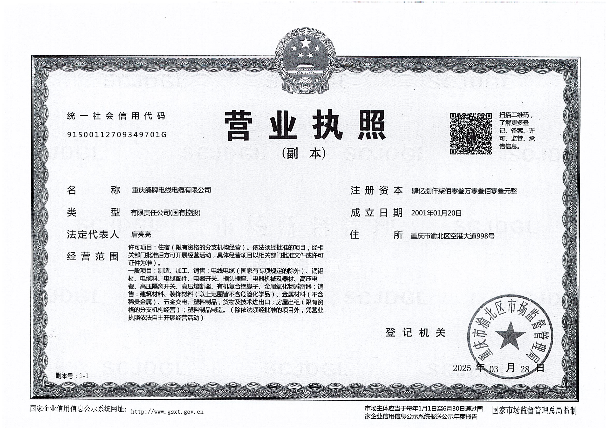 重慶鴿牌電線電纜有限公司,隸屬于港交所上市的重慶機電股份有限公司,系全國電線電纜行業重點國有控股企業。公司始建于1956年,60多年專注于電線、電纜、銅型材、高壓電瓷、塑膠管材的研發和生產,一直致力于打造水電一體化產品結構,為國際國內航天航空、軌道交通、發電機組、輸配電工程配套及家裝系列提供了安全、節能、環保產品和優質服務。